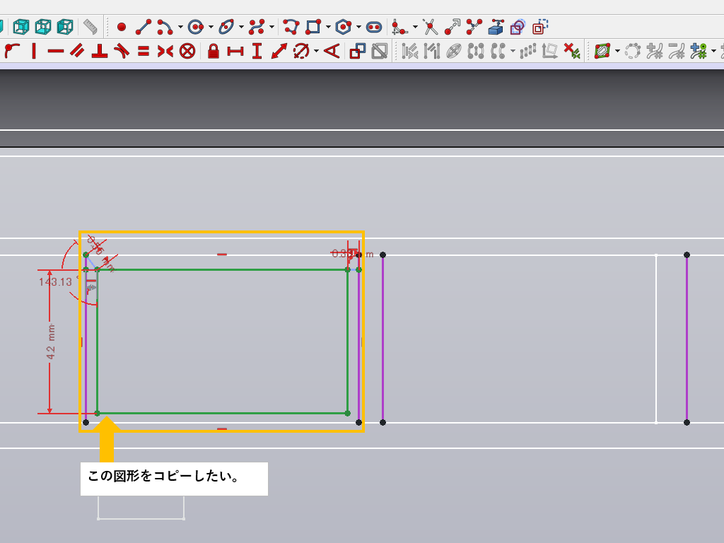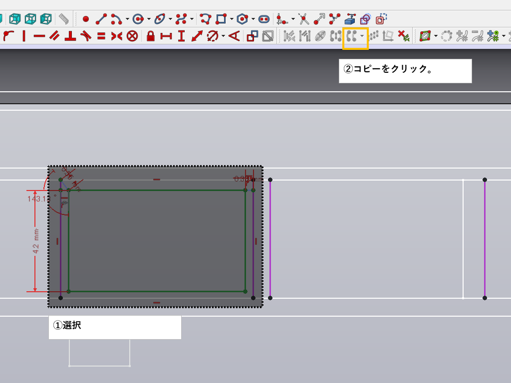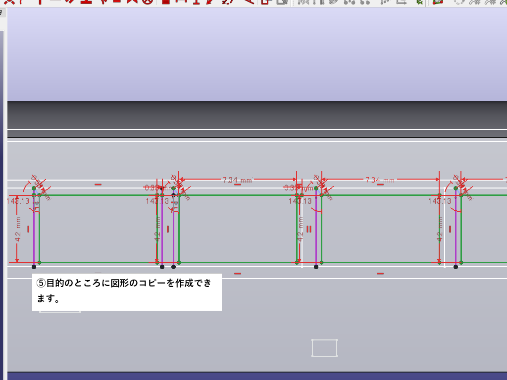 同じ形が繰り返し出てくるものなど、対称線がある場合は「対象コピー」が便利です。