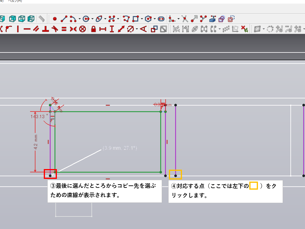 Ctrlキーを押しながら頂点を選択してコピー元となる点を選択することができます。
